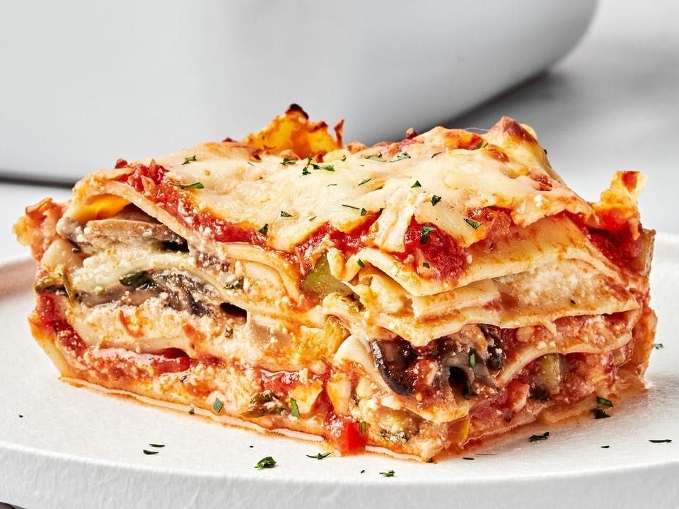 Home-made veggie. Combo lasagna baked with parmesan and mozzarella cheese.