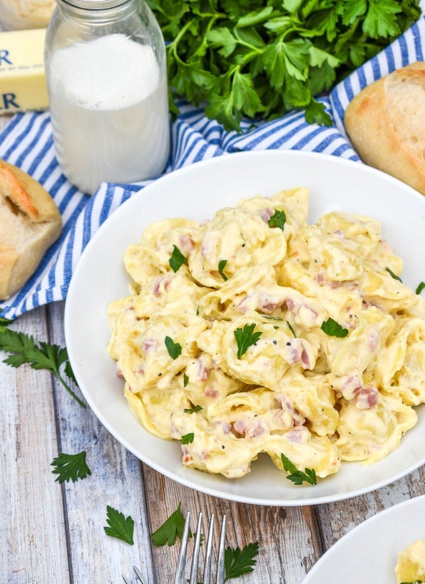 Tortellini made with ham, bacon, and alfredo